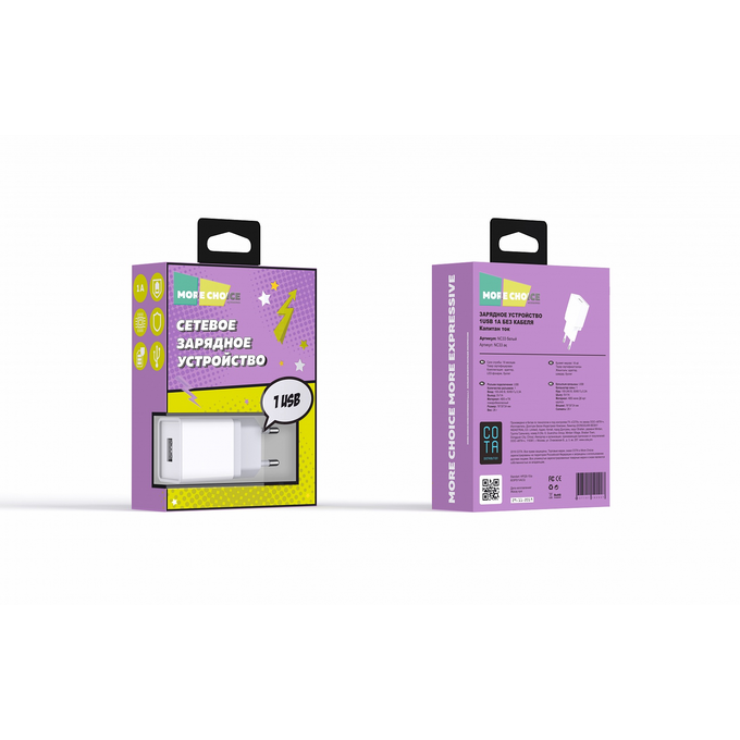 СЗУ 1USB 1A для micro USB More choice NC33m (White)
