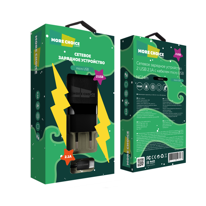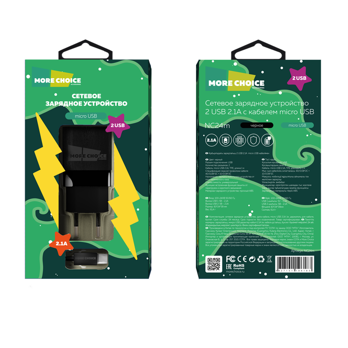 СЗУ 2USB 2.1A для micro USB More choice NC24m (Black)