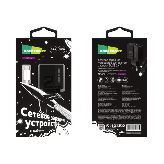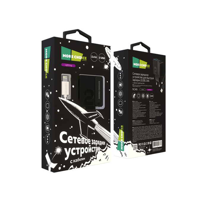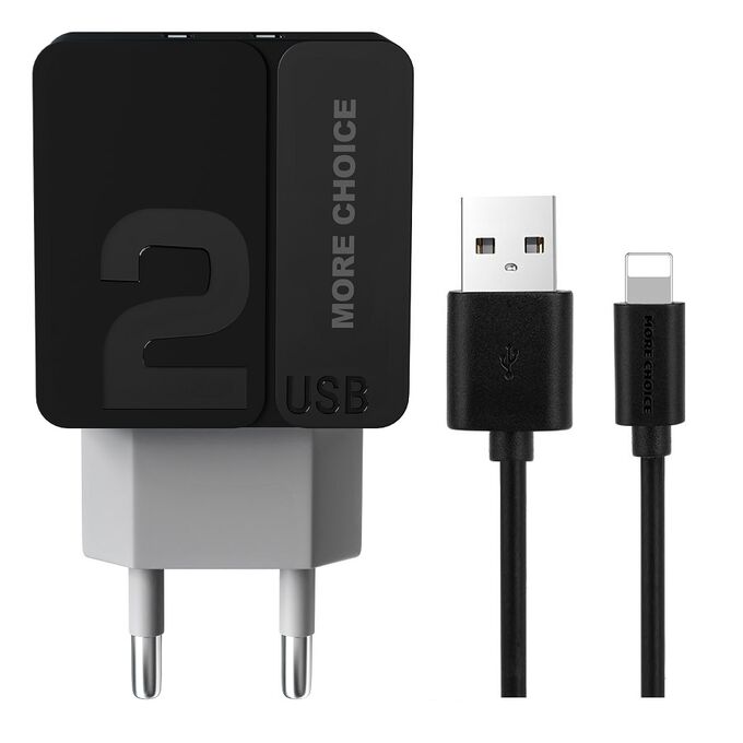 СЗУ 2USB 2.4A для Lightning 8-pin More choice NC46i 1м (Black Grey)