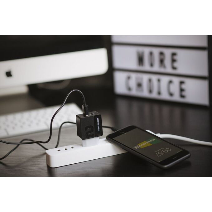 Комплектация: сетевое зарядное устройство, дата-кабель, держатель для кабеля, буклет