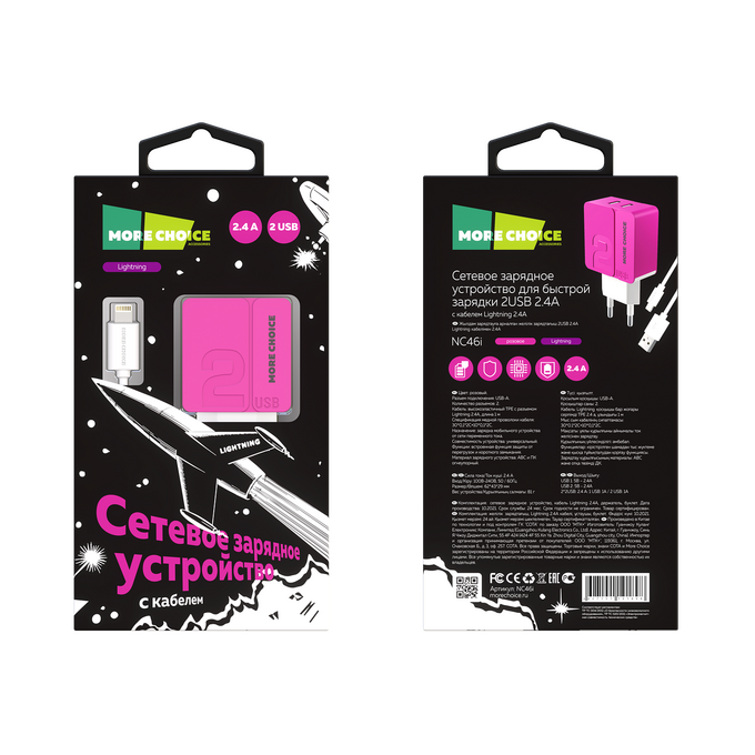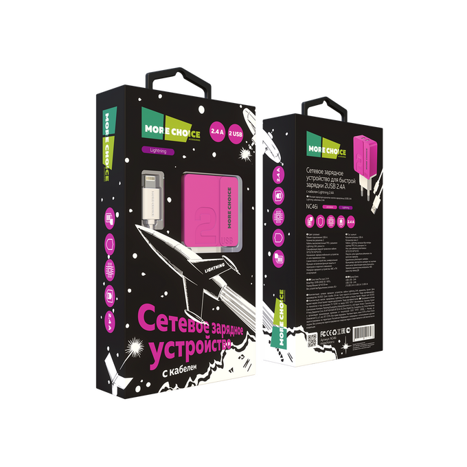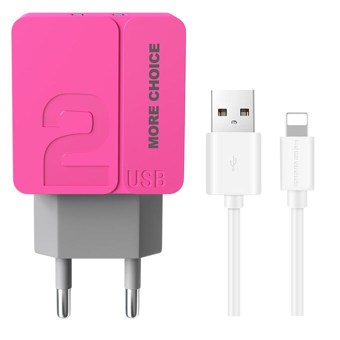 СЗУ 2USB 2.4A для Lightning 8-pin More choice NC46i 1м (Pink)
