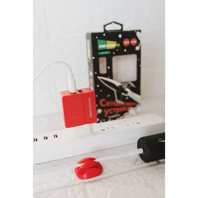 Комплектация: сетевое зарядное устройство, дата-кабель, держатель для кабеля, буклет