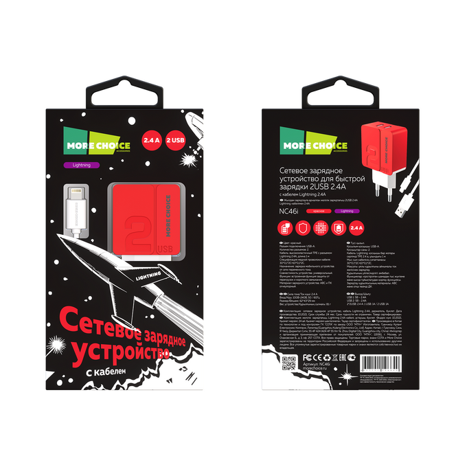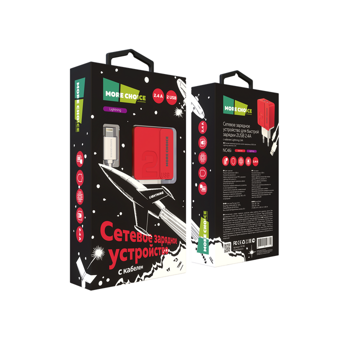 СЗУ 2USB 2.4A для Lightning 8-pin More choice NC46i 1м (Red)