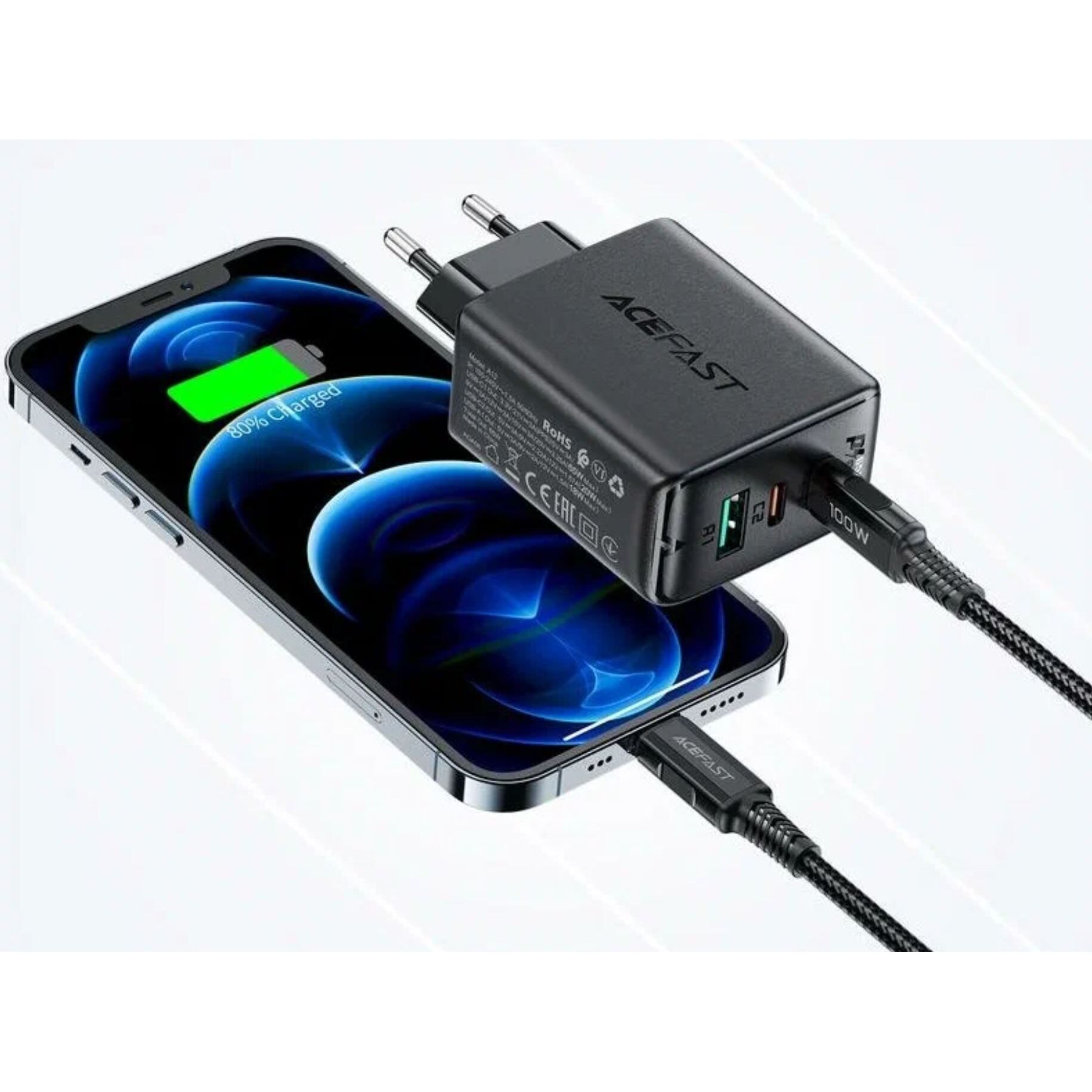 СЗУ ACEFAST A13 PD65W(USB-C+USB-C+USB-A) 3-port, black