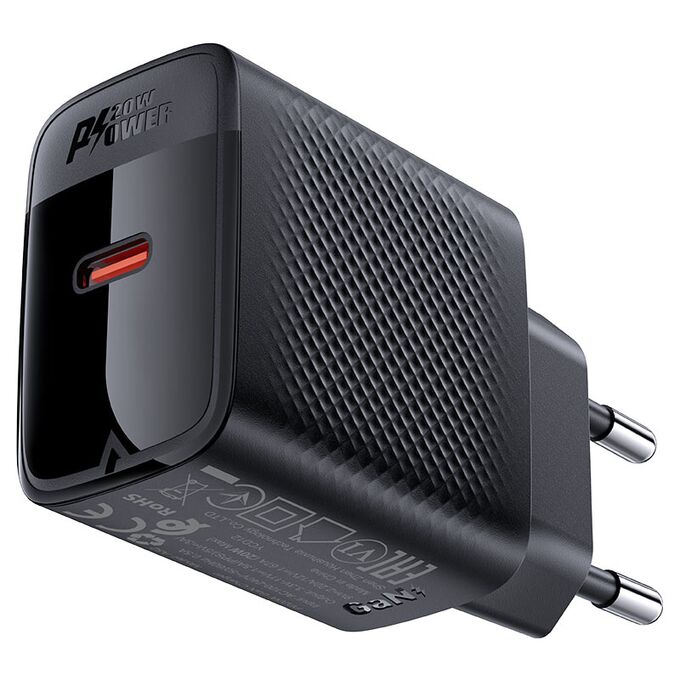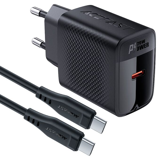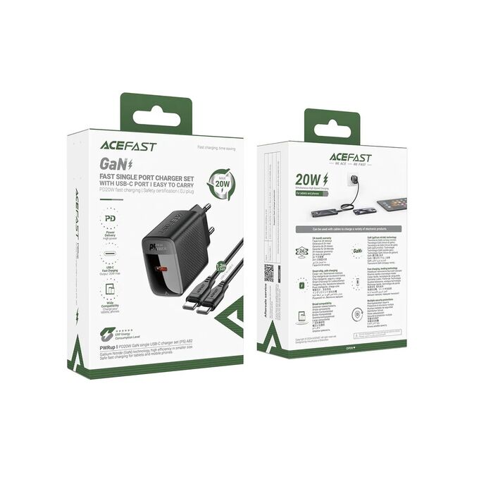 СЗУ ACEFAST A82 PD20W GaN single USB-C charger with USB-C to USB-C charging cable EU Black
