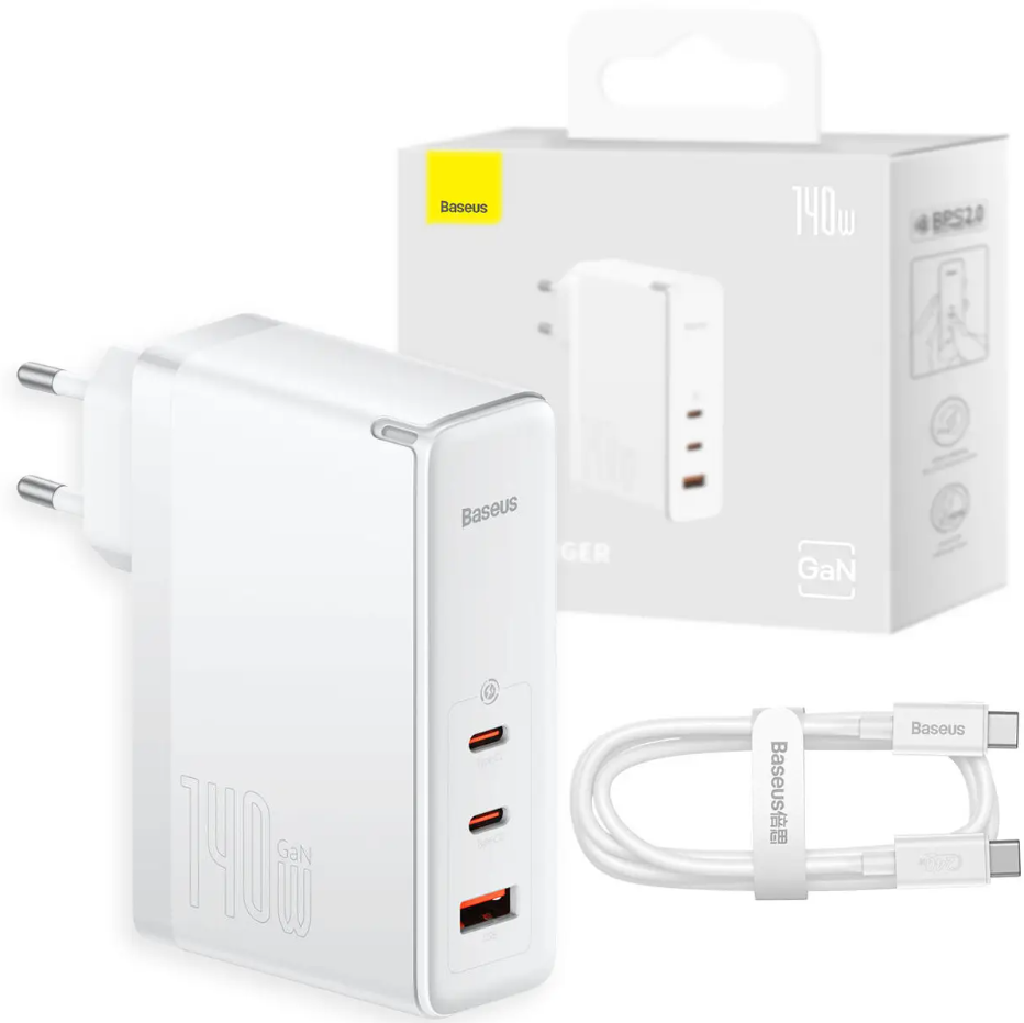 СЗУ Baseus GaN5 Pro CCGP100202 Fast Charger 2C+U 140W EU White (Type-C to Type-C 240W 1m)