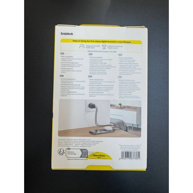 СЗУ Baseus Palm Fast Charger C+U 20W EU Moon Black (with Cable USB-C to USB-C 60W)