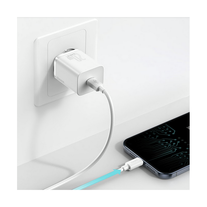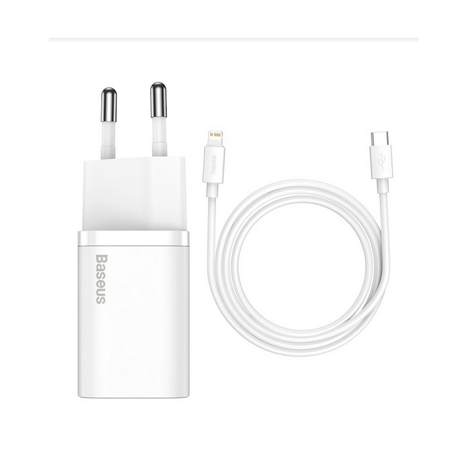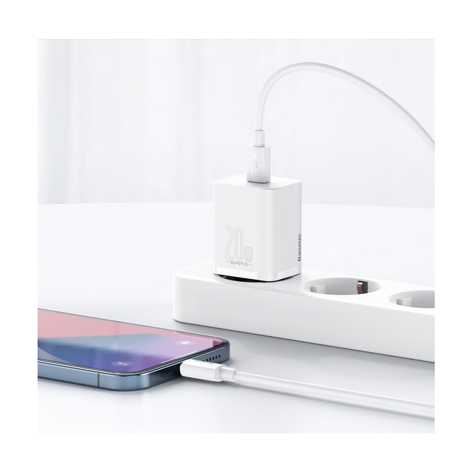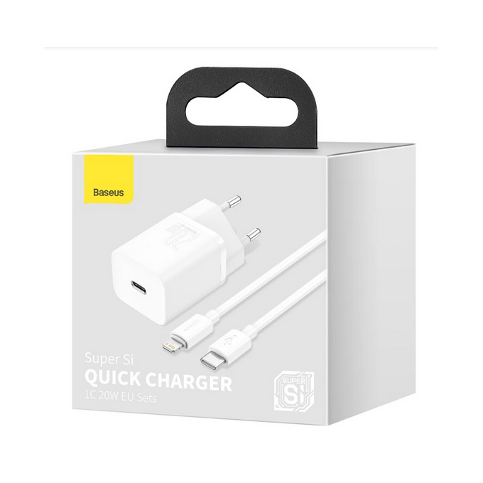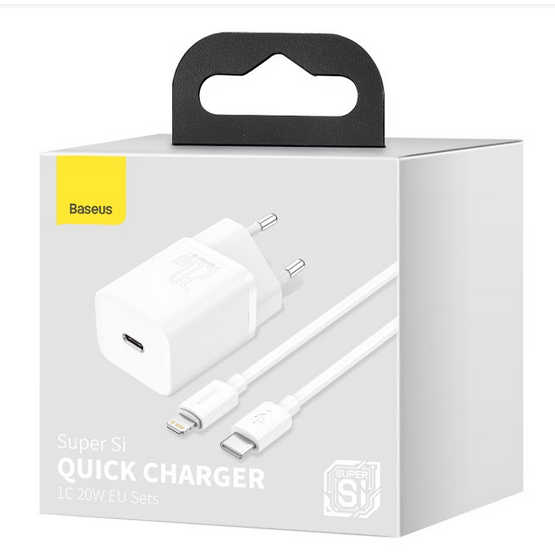 СЗУ Baseus Super Si TZCCSUP-B02 Quick Charger 1C 20W EU Sets Cable Type-C to iP 1m White