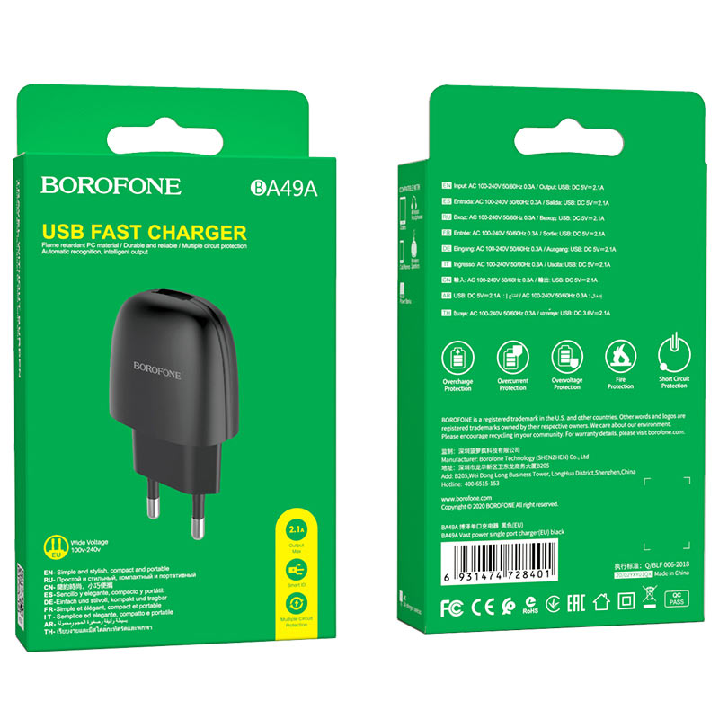 СЗУ BOROFONE BA49A Vast power 1USB, 2,1А (чёрный)
