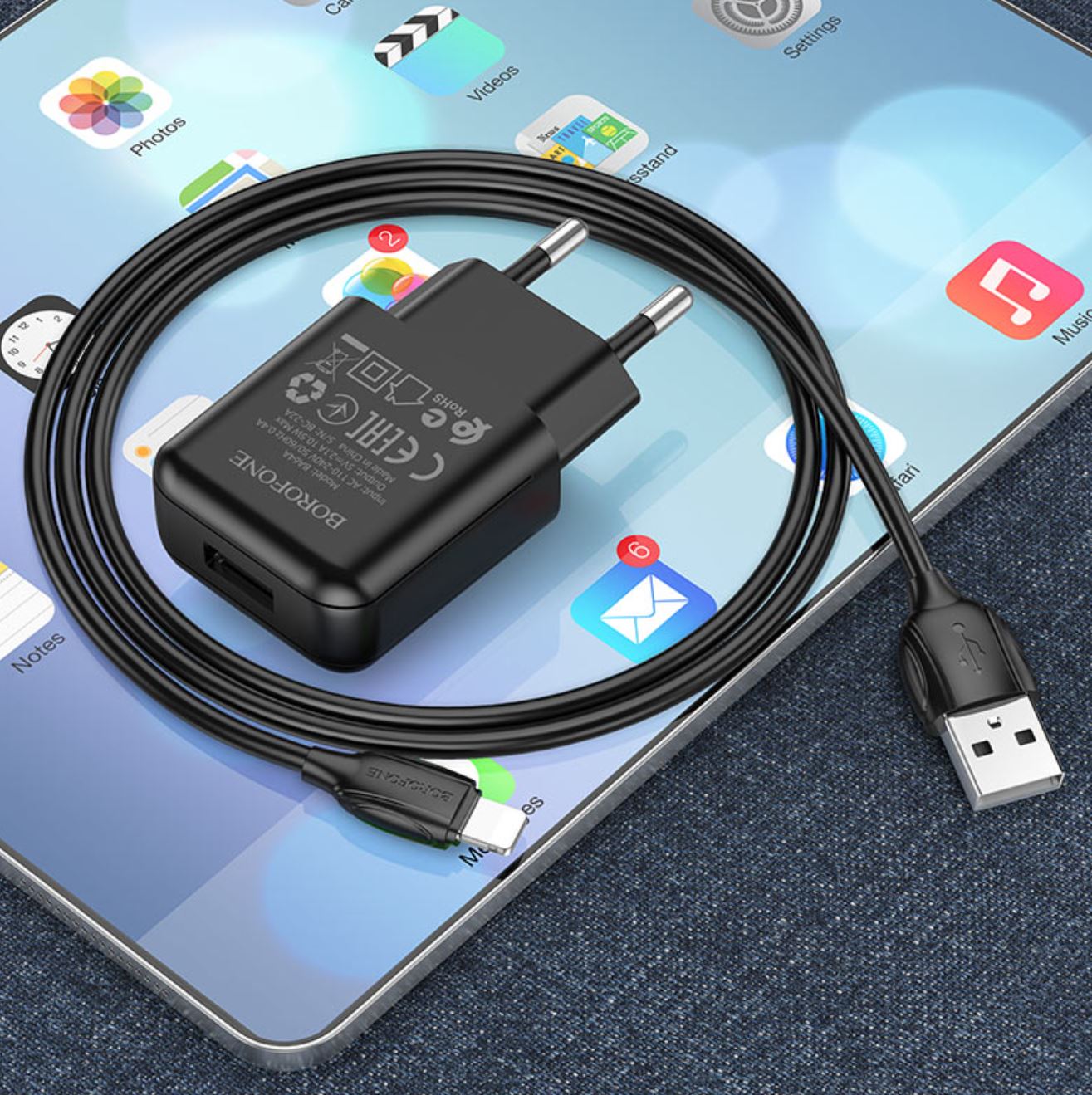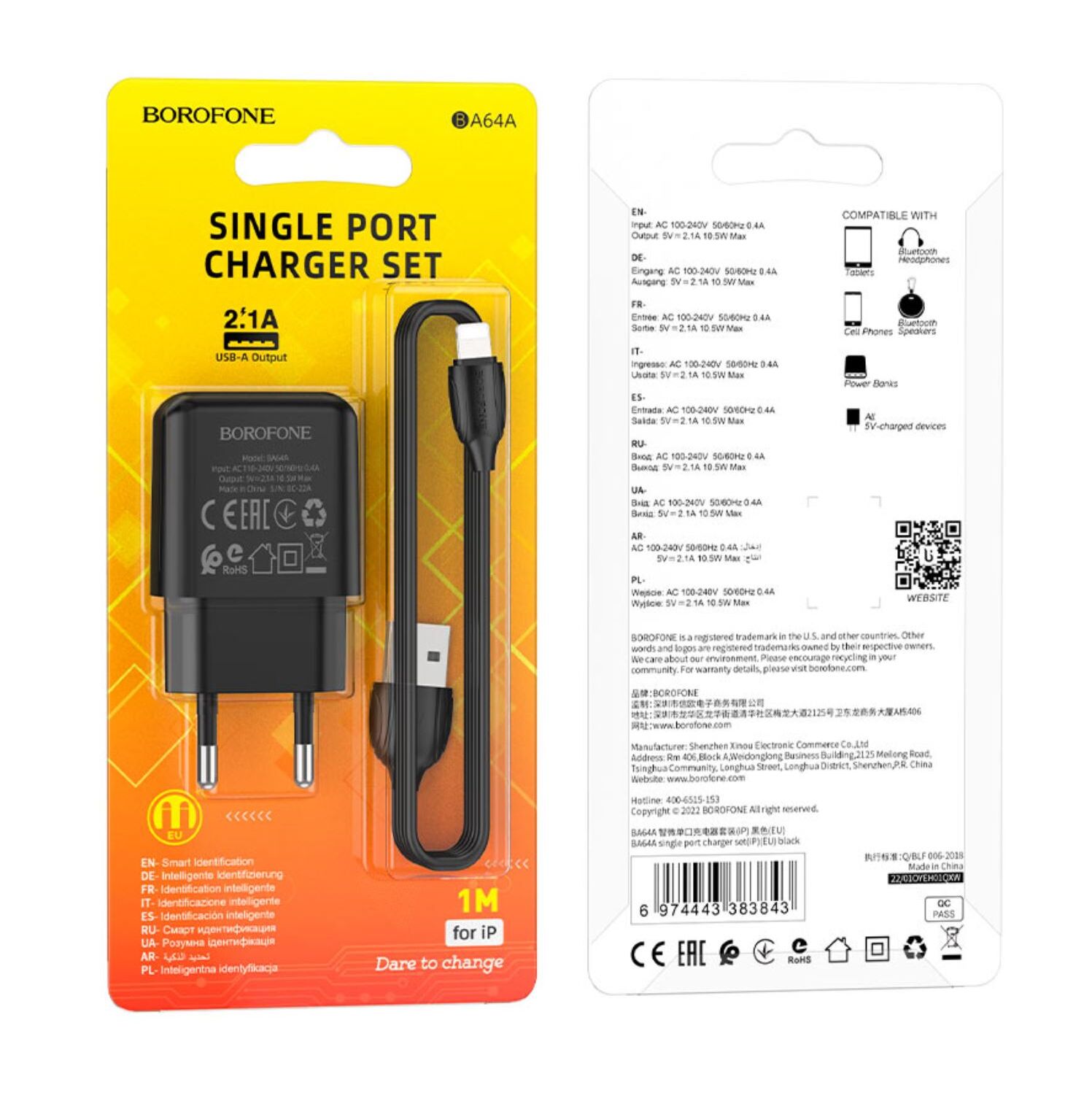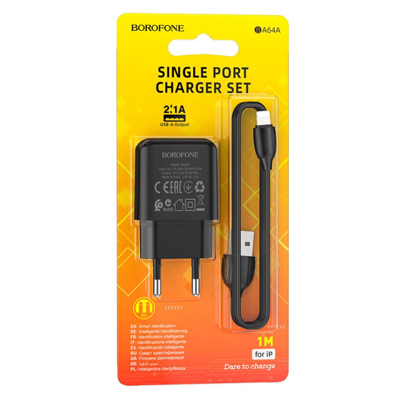 СЗУ Borofone BA64A Single port charger set Lightning (EU) (черный)