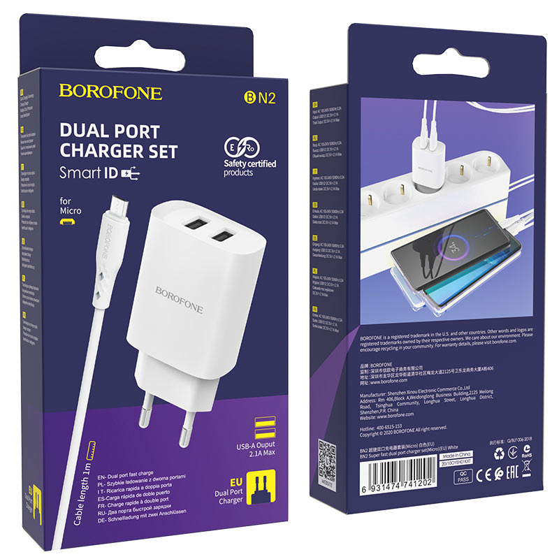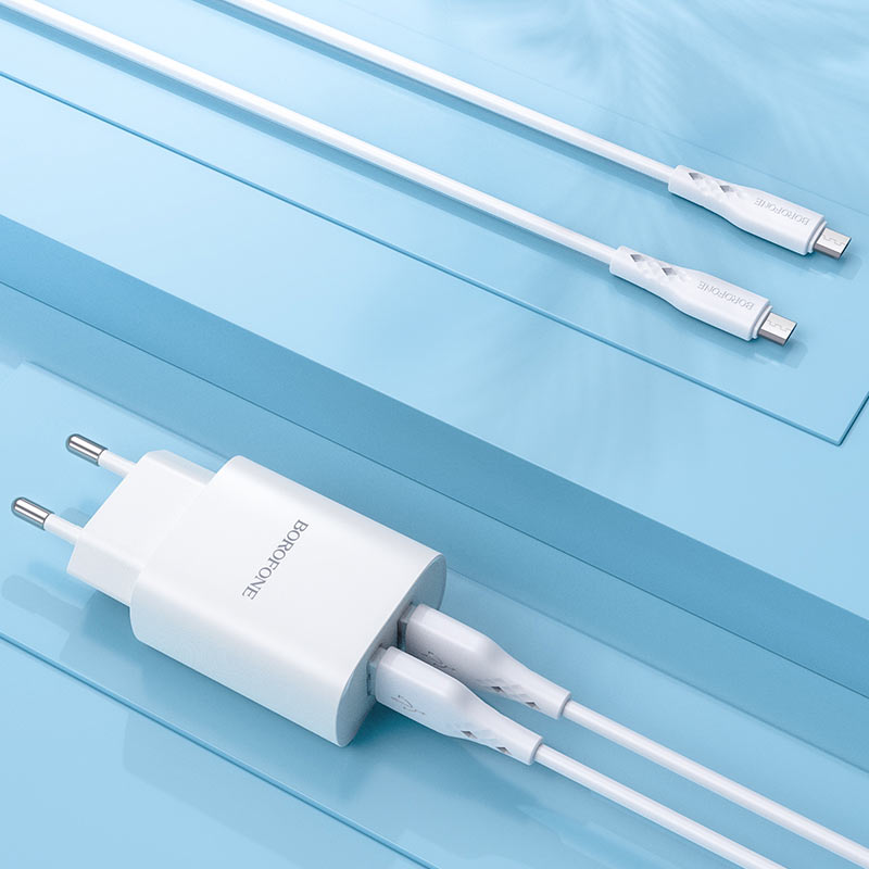 СЗУ Borofone BN2 Super fast dual port charger set(Micro), white