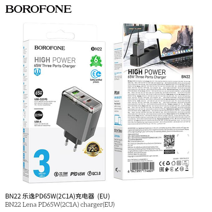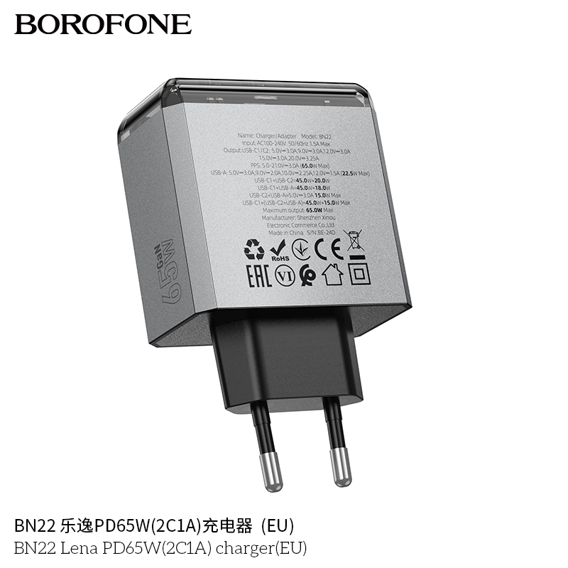 СЗУ BOROFONE BN22 Lena PD65W(2C1A) charger(EU) (серый)