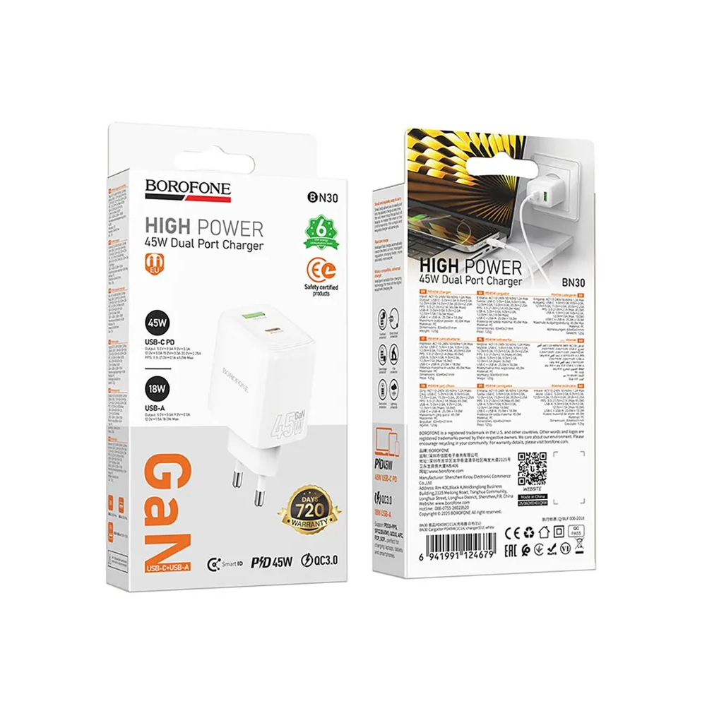СЗУ BOROFONE BN30 Cargador PD45W(1C1A) (белый)
