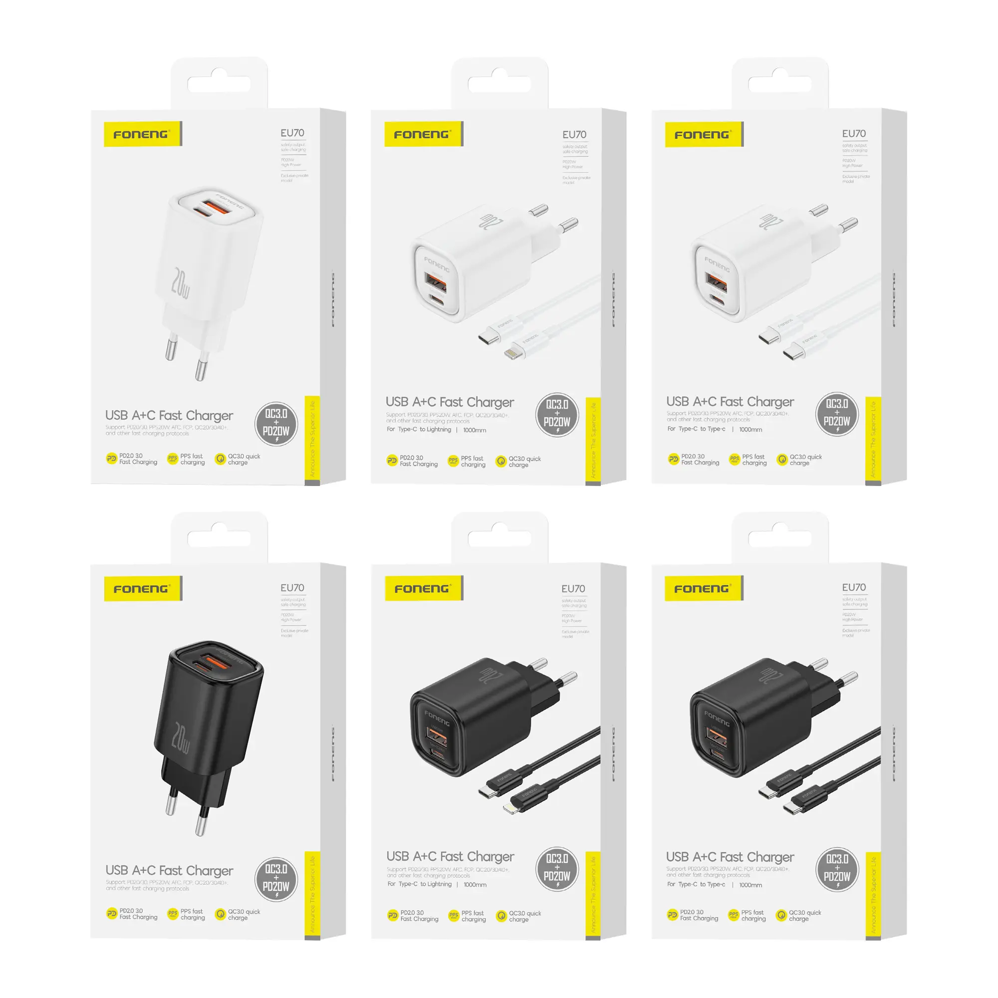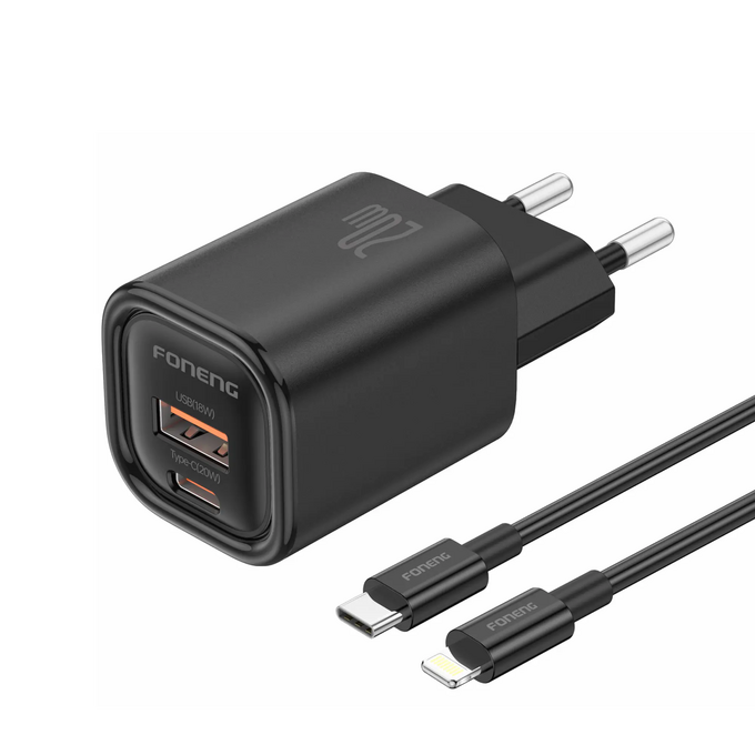 СЗУ Foneng EU70 USB-A / USB-C, PD20W + кабель Type-C to Lightning (Black)