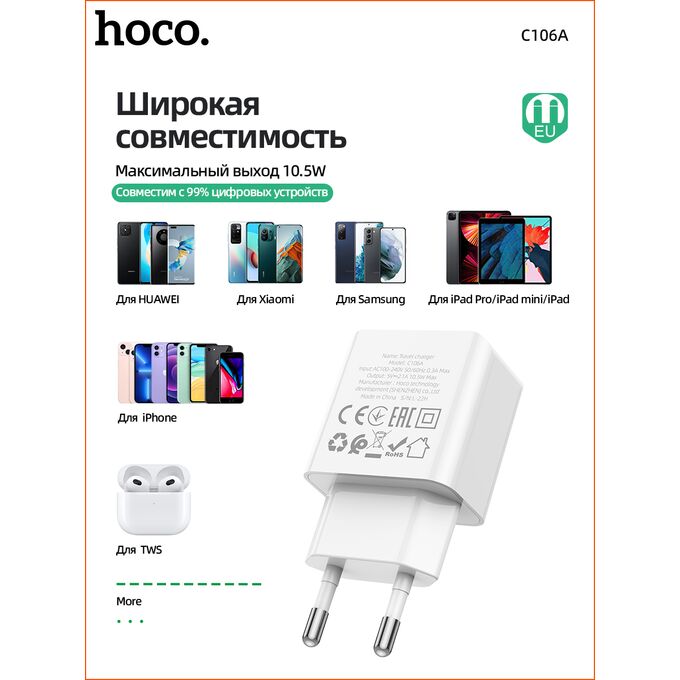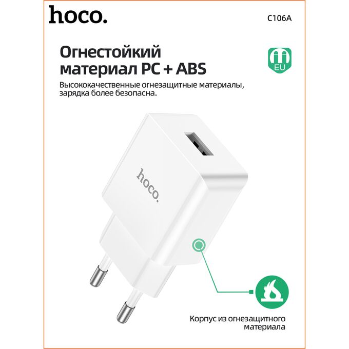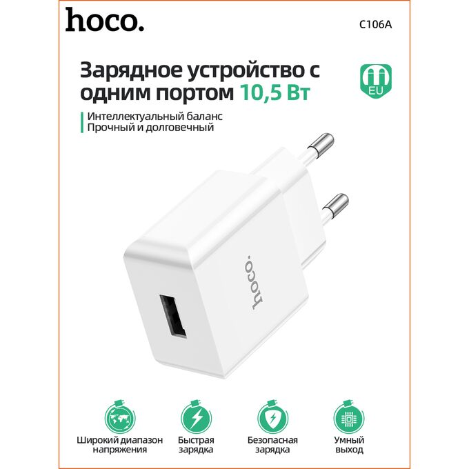 СЗУ HОСО C106A Leisure 1USB charger (EU) (белый)