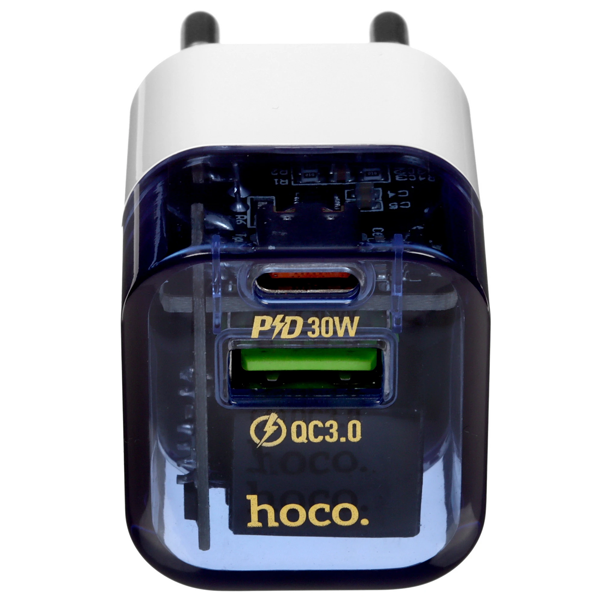 СЗУ HOCO C131A Platinum dual-port PD30W+QC3.0 transparent (голубой)