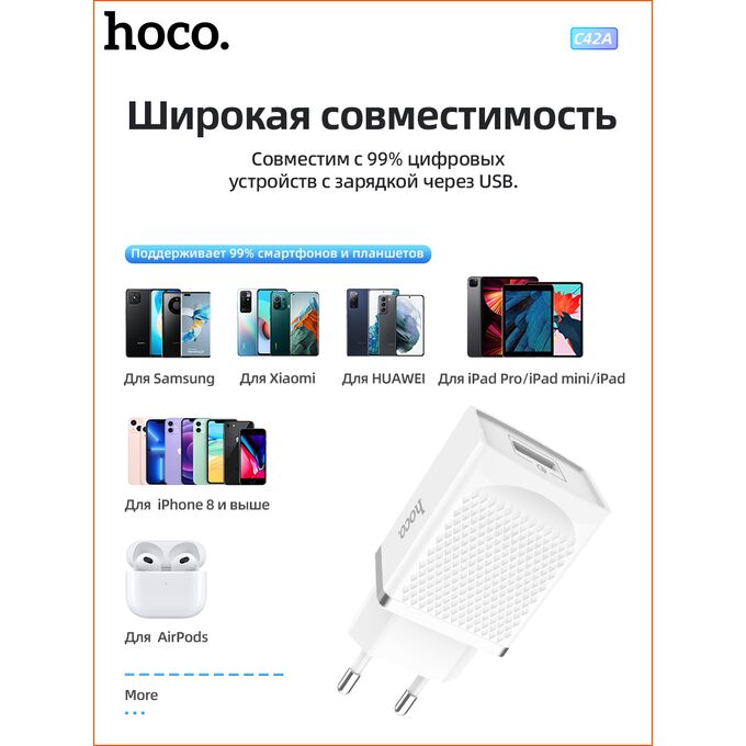 СЗУ Hoco C42A Vast power QC3.0 (AFC) single port, white