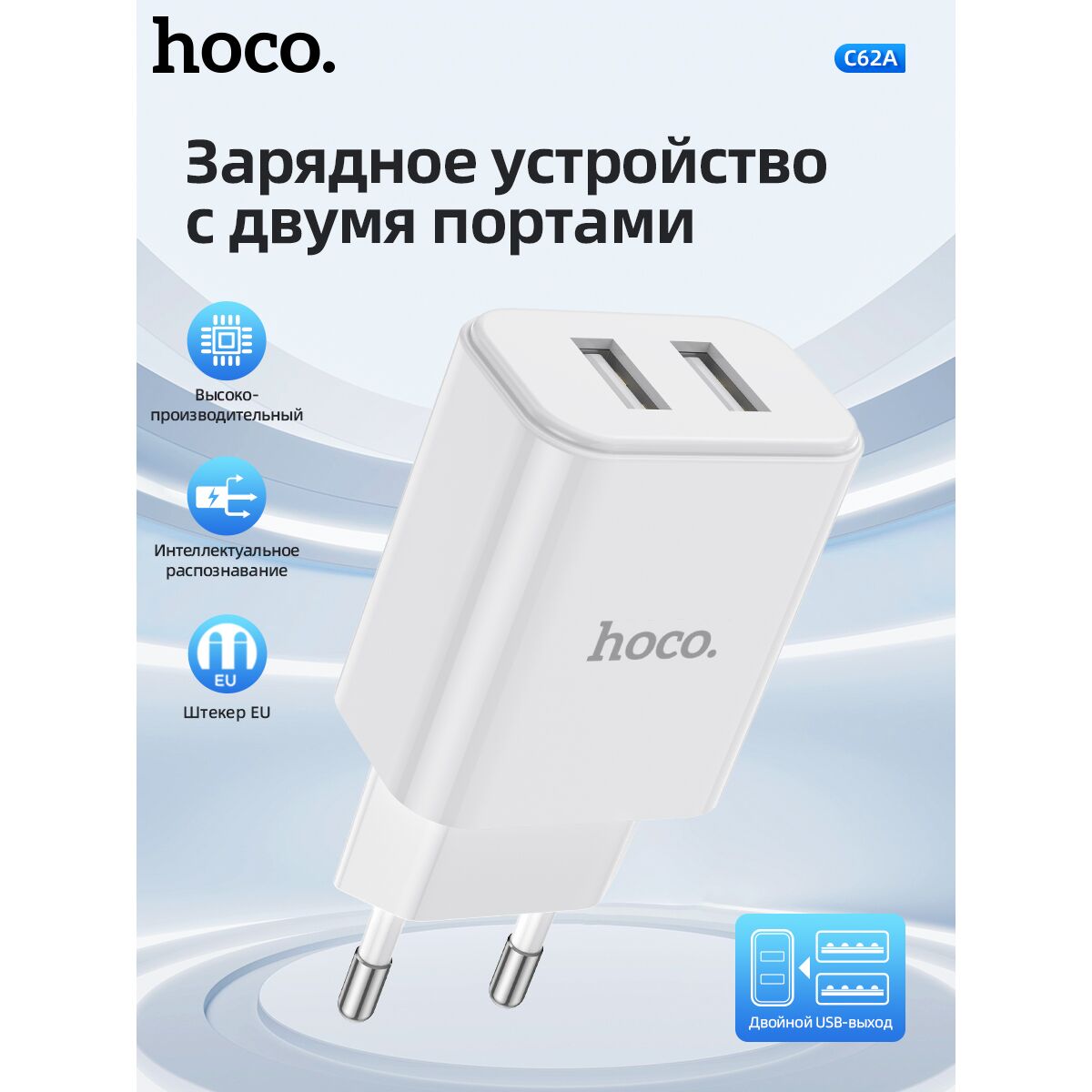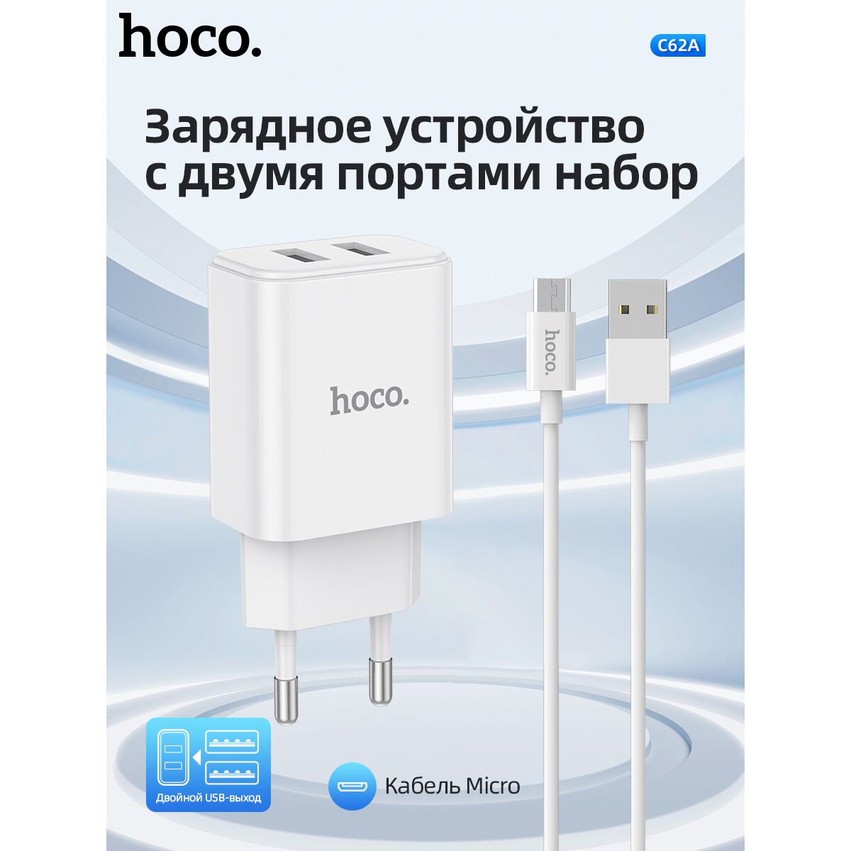 СЗУ Hoco C62A Victoria dual port +Micro 2.1A, white