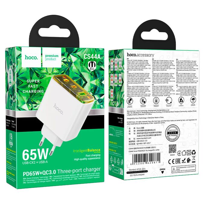 СЗУ HOCO CS44A Smart PD65W(2C1A) charger (белый)