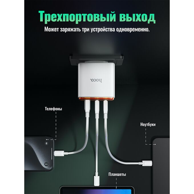 Трехпортовый C 1+ (C 2 + USB-A): 45 Вт + 15 Вт (60 Вт)