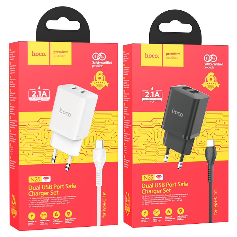 Комплект с кабелем 1м для Lightning/Type-C/Micro-USB.