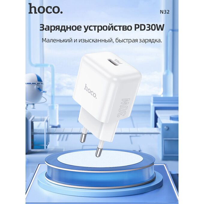 СЗУ HOCO N32 Glory 1USB, PD30W (белый)
