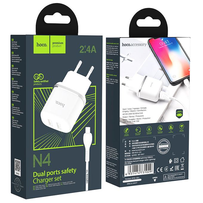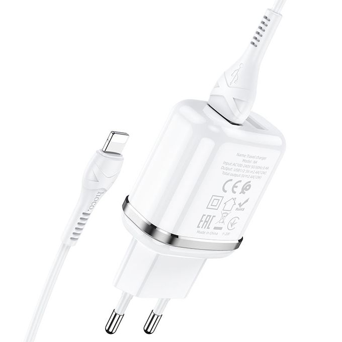 СЗУ HOCO N4 Aspiring 2USB +Lightning 2.4A, белый