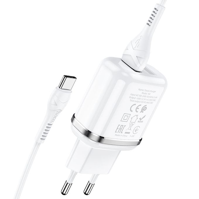 СЗУ HOCO N4 Aspiring 2USB +Type-C 2.4A, белый
