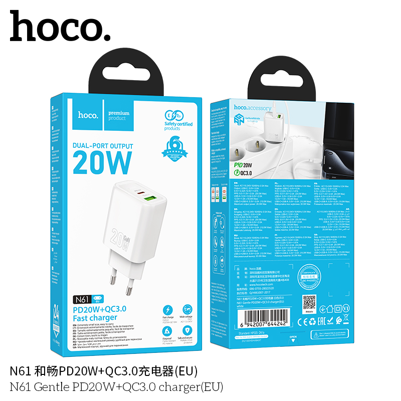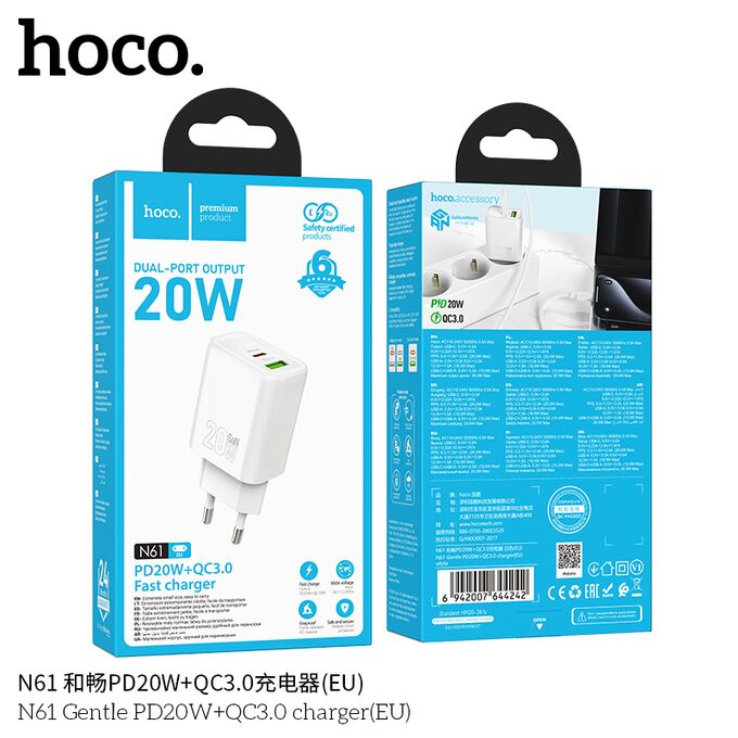 СЗУ HOCO N61 Gentle PD20W+QC3.0 (белый)