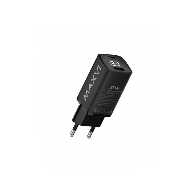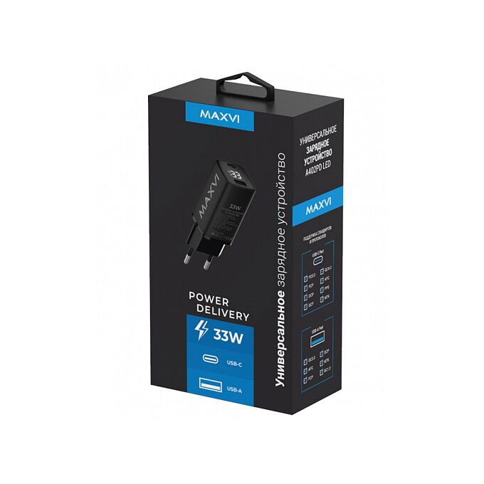 СЗУ Maxvi A402PD LED 33W, 1xUSB-A, 1xUSB-C, black