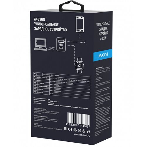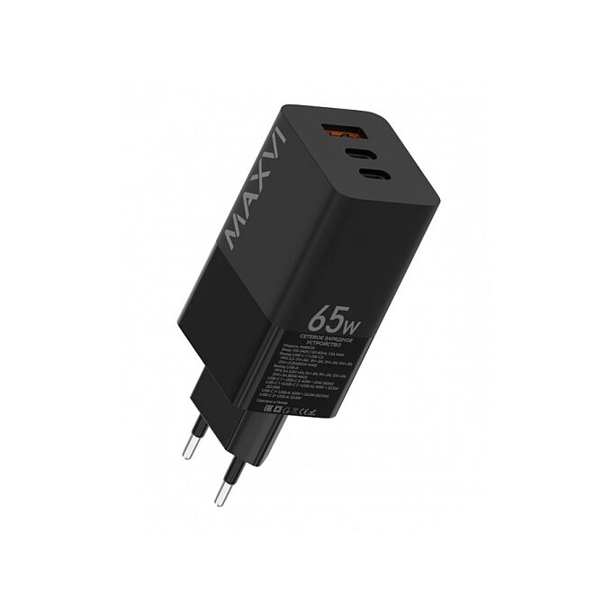 СЗУ Maxvi A483GN 65W, 1xUSB-A, 2xUSB-C, black