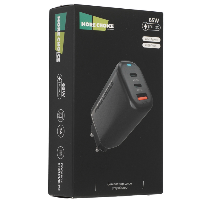 СЗУ More Choice NC79 1USB+2Type-C 3.0A PD 65W быстрая зарядка Black
