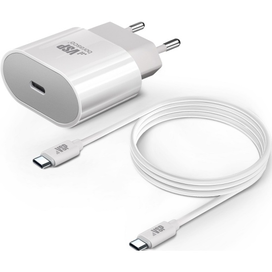 СЗУ Power Delivery, 20W + Дата-кабель Type-C - Type-C, 3А, 1м, белое