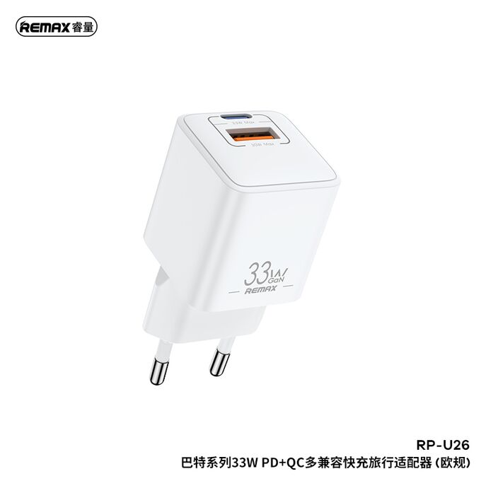 СЗУ REMAX Batt Series 33W PD+QC Multi-Compatible Fast Charger RP-U26 GaN (White)