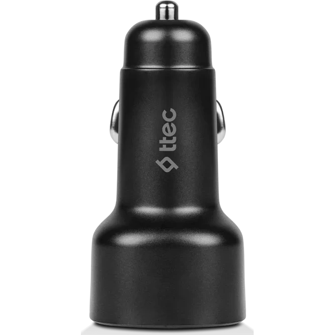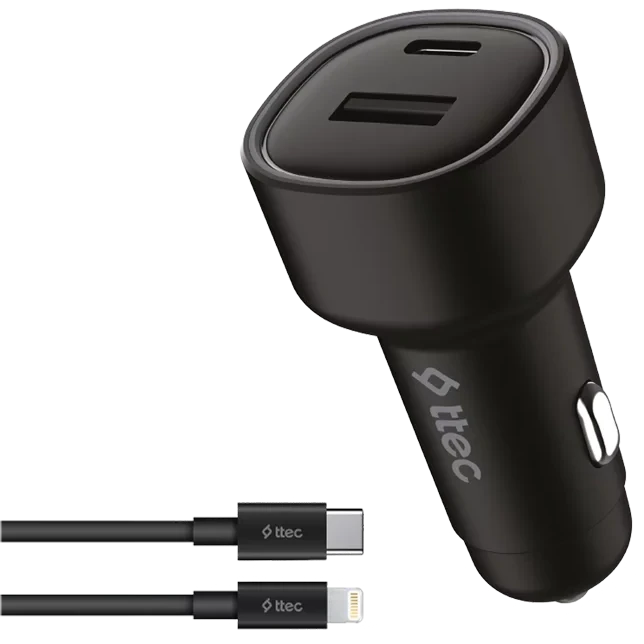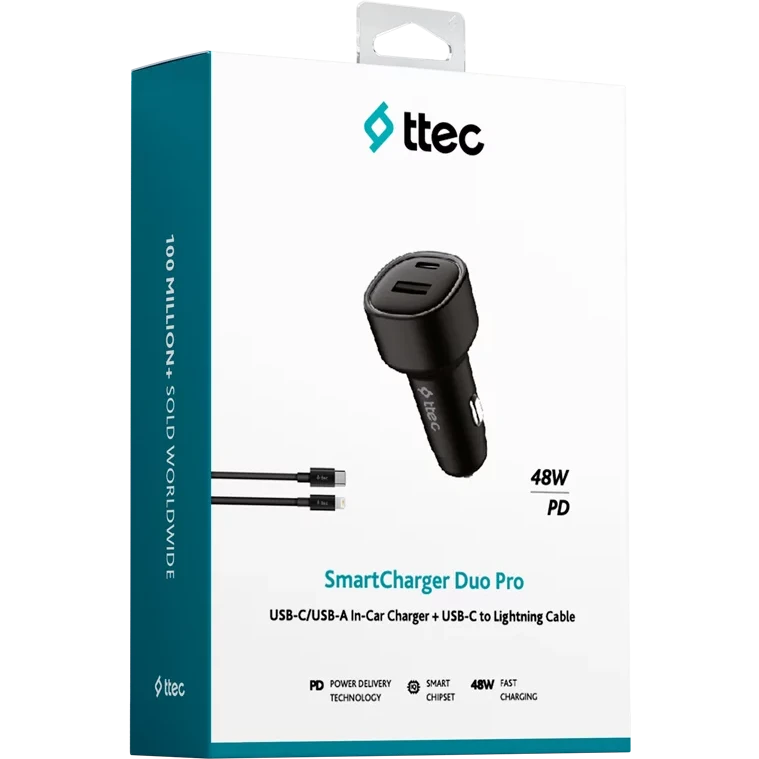 TTEC SmartCharger Duo PD 48W Vehicle Fast Charger USB-C+USB-A With USB-C-Lightning Cable - Black