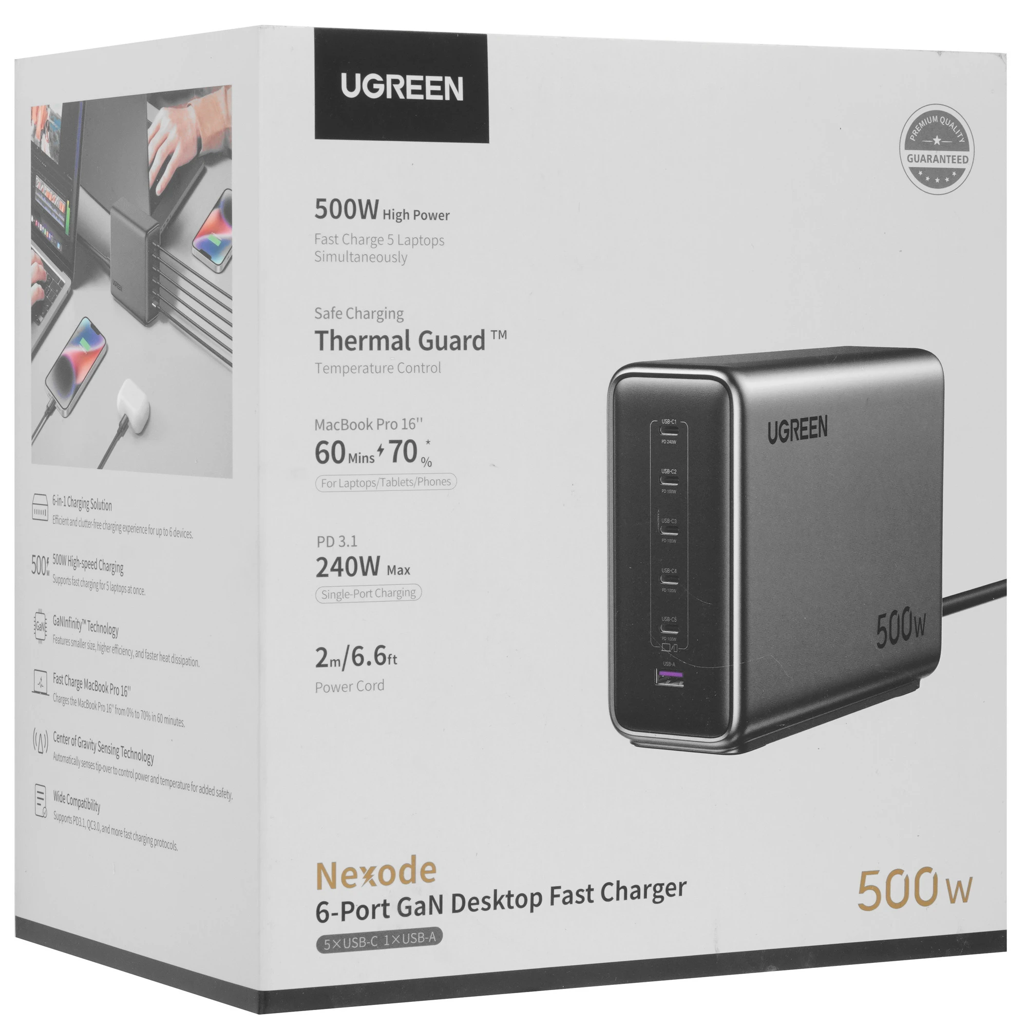 СЗУ UGREEN X759 (55550B) 500W 6-Port 1*USB-A&5*USB-C GaN Desktop Fast Charger EU: серый космос