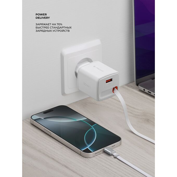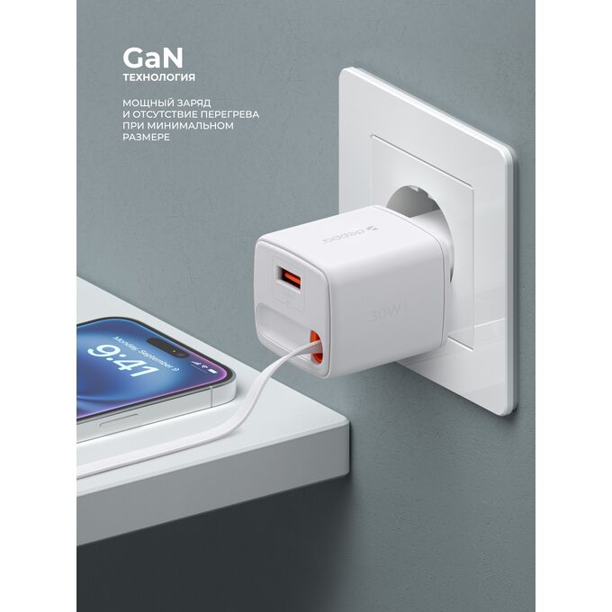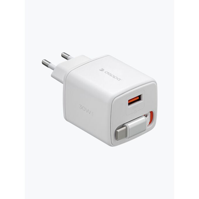 СЗУ USB-C + USB-A, PD 3.0, QC 4.0+, 30W, GaN, белый, Deppa