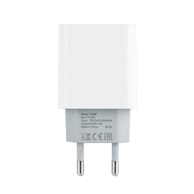 Сетевое зарядное устройство с кабелем USB на MicroUSB + 2.4A HS26 ISA белое