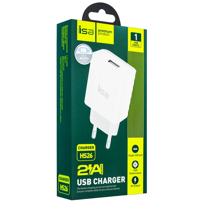 СЗУ USB + кабель Micro USB 2.4A ISA HS26 (White)