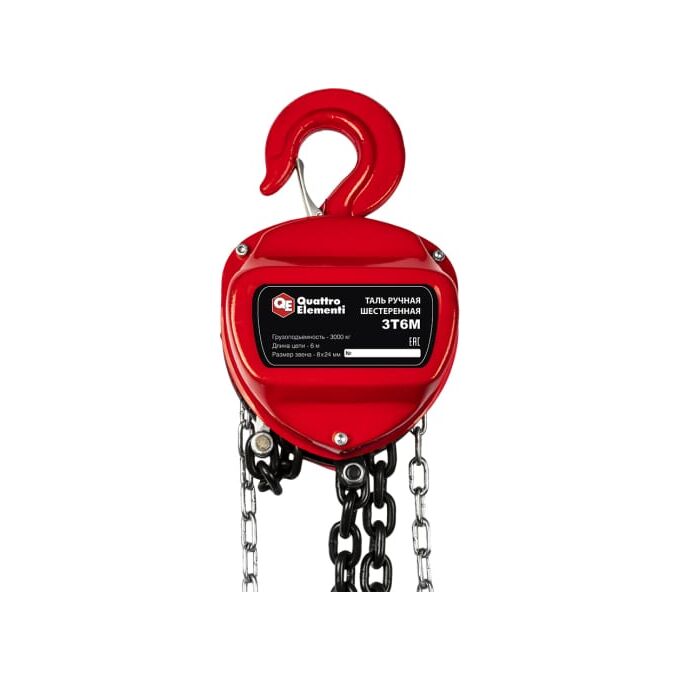 Таль ручная шестеренная Quattro Elementi 3T6M (908-061) грузоподъемность 3000 кг/длина цепи 6 м