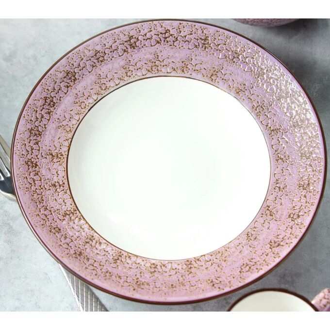 Цвет тарелки напоминает акварельный рисунок: нежнейший и воздушный, он словно растворяется в белом фарфоре, оставляя за собой легкий шлейф эмоций. Оттенок безмятежности и чувственности, который навевает мечтательные настроения.