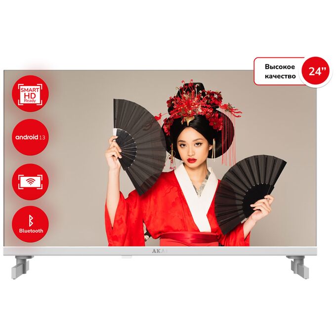 24" Телевизор Akai TA24BH502 белый 1366x768, HD Ready, 60 Гц, Wi-Fi, Smart TV, Android AOSP