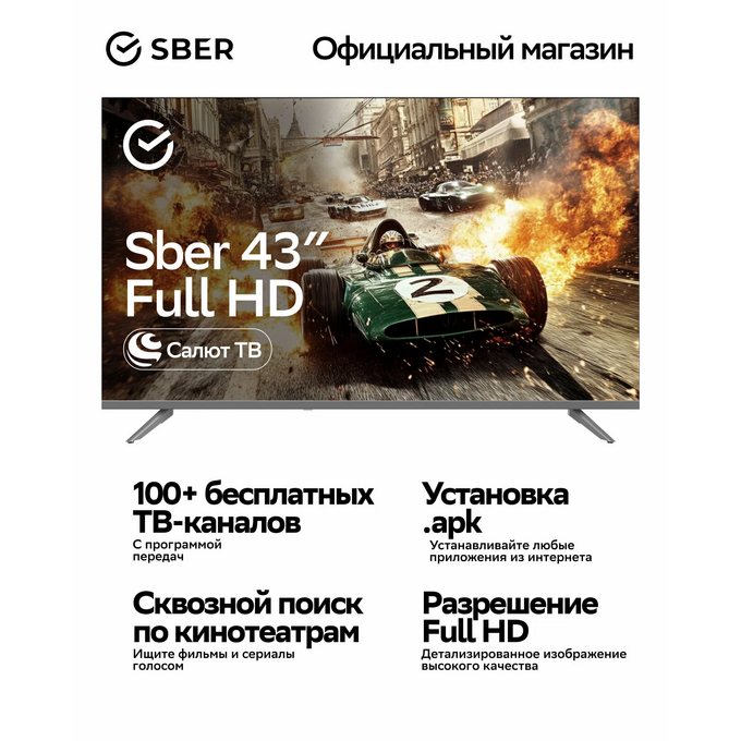 43" Телевизор Sber SDX 43F3111 черный 1920x1080, Full HD, 60 Гц, Wi-Fi, Smart TV, Салют ТВ