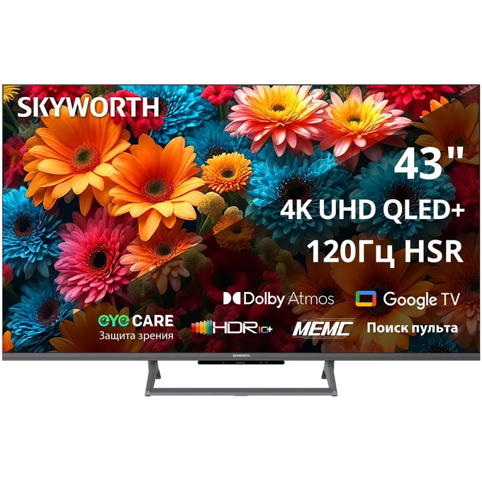 43" Телевизор Skyworth 43Q67H черный QLED 3840x2160, 4K Ultra HD, 120 Гц, Wi-Fi, Smart TV, Google TV
