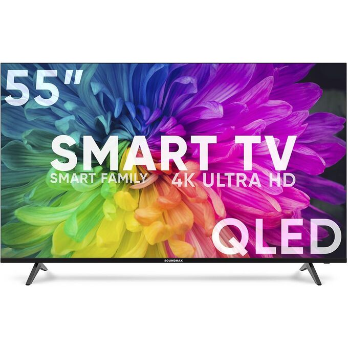 55" Телевизор Soundmax SM-QLED55T21SU QLED черный 3840x2160, 4K Ultra HD, 60 Гц, Wi-Fi, Smart TV, Android TV