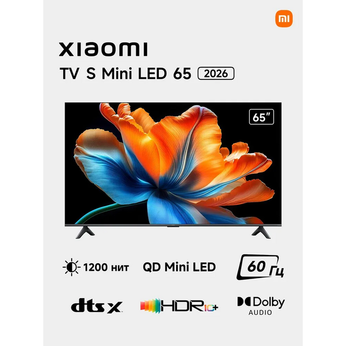 65" Телевизор Xiaomi TV S Mini LED 65 2026 L65MC-SRU черный 3840x2160, 4K Ultra HD, 60 Гц, Wi-Fi, Smart TV, Android TV РСТ¶
