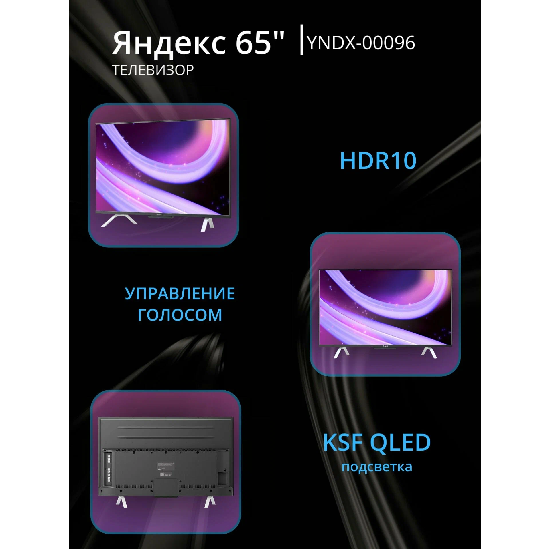 65" Телевизор YANDEX ТВ Станция с Алисой YNDX-00096 черный 3840x2160, 4K Ultra HD, 60 Гц, Wi-Fi, Smart TV, Яндекс ТВ
