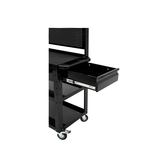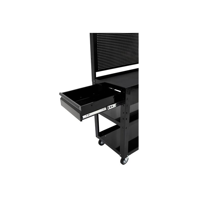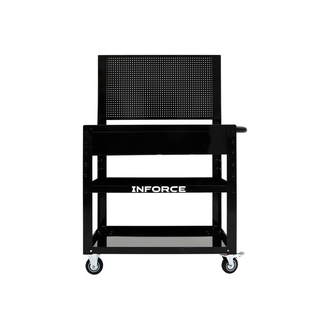 Инструментальная тележка Inforce 3 полки с панелью и ящиками 06-01-19 представляет собой обширное рабочее место, которое можно использовать в гараже, мастерской и на производстве. Для хранения инструмента есть полки и ящики. Совместима с 06-01-19-003.