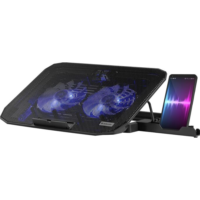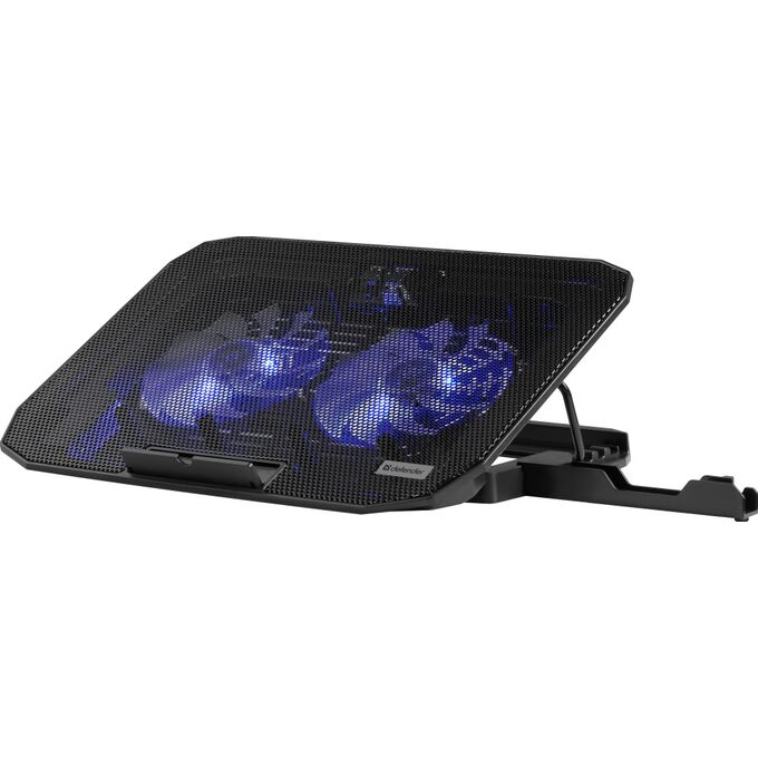 Компактная охлаждающая подставка с двумя мощными вентиляторами и регулируемым углом наклона для максимального комфорта при работе с ноутбуком. Фиксаторы для ноутбука обеспечат устойчивое положение техники на подставке