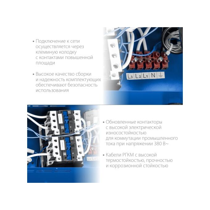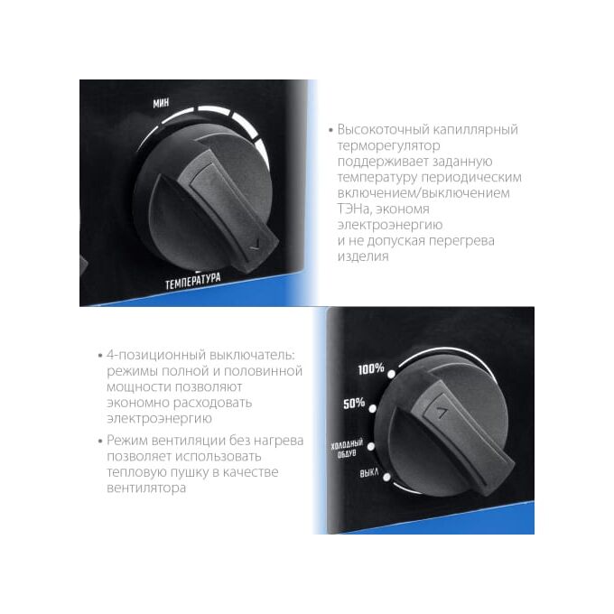 Надёжная доработанная конструкция обеспечивает защиту как пользователя, так и тепловой пушки в случае возникновения нештатных ситуаций.